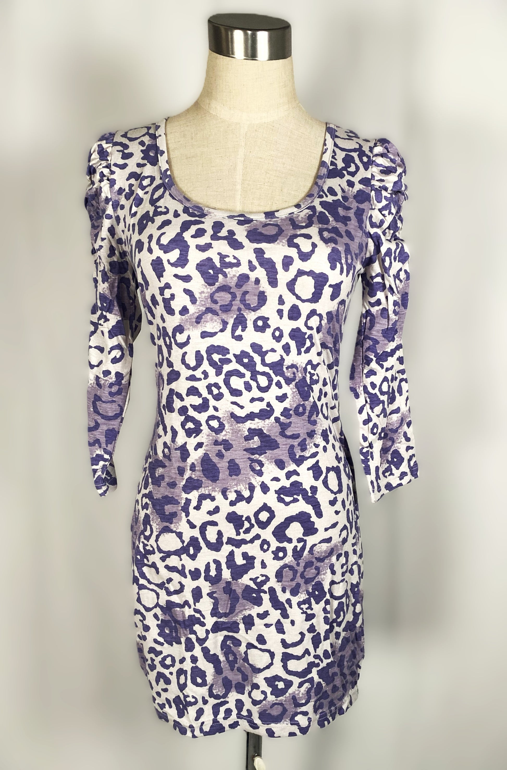 ヴィンテージ セシルマクビー パープル レオパード柄 スクープネック ミニドレス